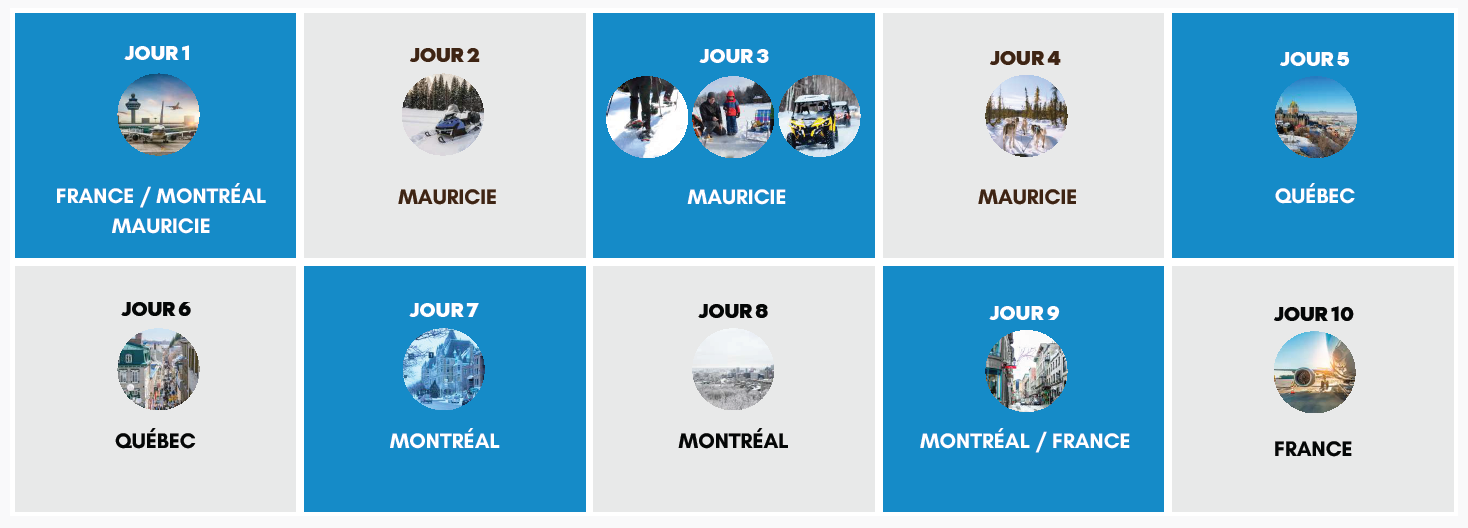 Accompagné(e) d’un guide certifié, vous partez explorer le Vieux-Montréal, avec ses sites emblématiques tels que la Place d’Armes, le Vieux-Port, l’Hôtel de Ville et le marché Bonsecours. Admirez la basilique Notre-Dame, un chef d’oeuvre gothique dont les vitraux racontent l’histoire religieuse de Montréal et les moments clés de sa fondation. Promenez-vous au cœur du centre-ville, en passant par la rue Sainte-Catherine et l’avenue McGill College, et contemplez les célèbres gratte-ciels, dont la Place Ville-Marie. Enfin, visitez le stade olympique.