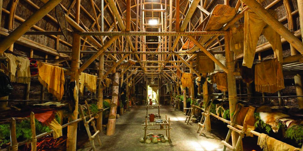 Atelier de fabrication de roues de la médecine, symbole sacré dans les traditions autochtones sur la ville reconstituée des Hurons, pour découvrir la culture du peuple autochtone.